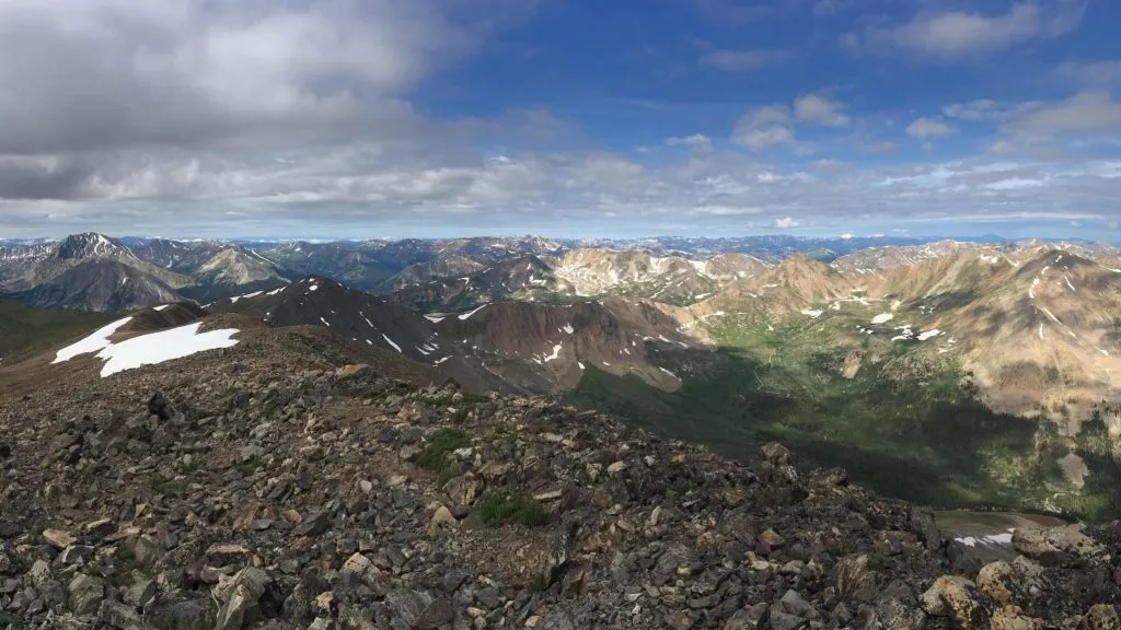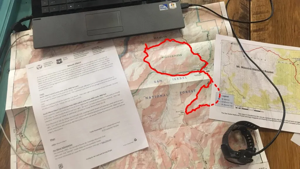 En arrivant à Leadville, je planifiais passer mes deux prochaines journées à faire Elbert et Massive, les deux plus hauts sommets du Colorado, d’ailleurs classés respectivement en deuxième et troisième position pour les plus hauts sommets des États-Unis continus. Malheureusement pour moi, j’ai des tendances hyperactives et je n’aime pas trop les sentiers aller-retour, ni les sentiers trop fréquentés. Je dis malheureusement, car au moment ou j’ai appris que les deux montagnes étaient séparées d’une distance relativement courte, je ne pouvais plus être sauvé, et mes jambes savaient déjà comment ça allait finir. Alors me voilà dans un petit café de Leadville, avec des cartes étendues un peu partout sur la table, un ordi et des documents ramassés à la station du ranger, à planifier une double boucle ridiculement trop longue qui parcourt les deux montagnes en évitant les voies classiques.