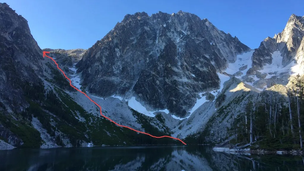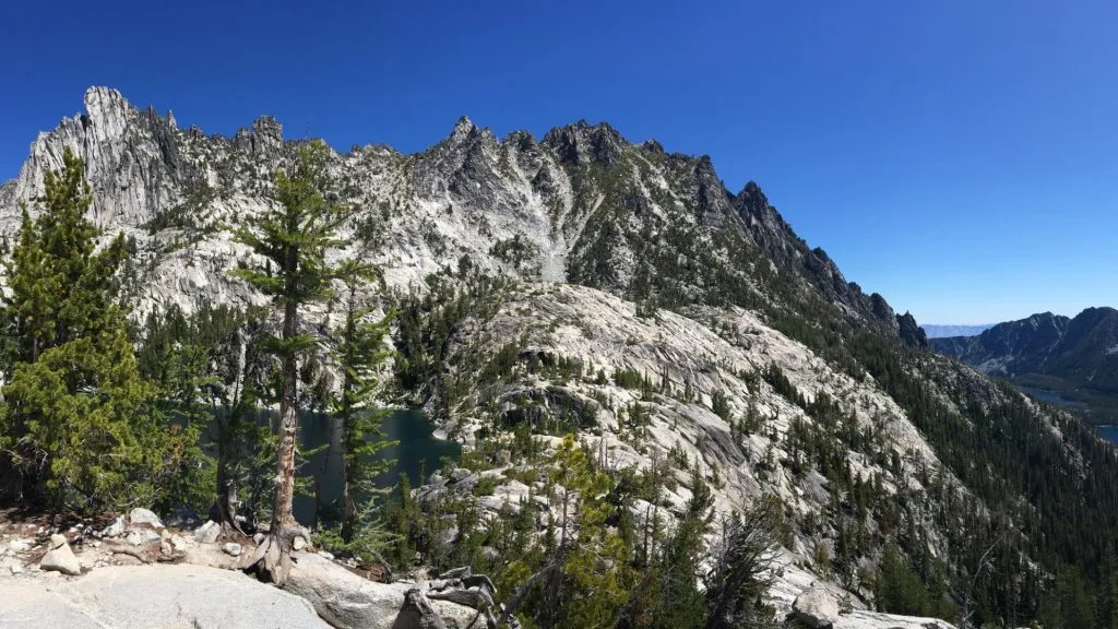 Ce sentier serait probablement parfait pour vous, mais attention! Traverser les Enchantments n’est pas chose facile. En effet, un segment hors sentier demande de bonnes aptitudes de navigation. Certains passages sont difficiles à suivre en raison du trop grand nombre de chèvres, qui laissent des sentiers, qui croisent et recroisent le sentier principal, rendant la navigation très ardue. À cela s’ajoutent des pentes très prononcées, quelques segments de simili-escalade ainsi que du dénivelé à n’en plus finir. (voir photo ci-dessous) Une fois le tout assemblé, on obtient un sentier qui vous en demandera beaucoup, et qui testera certainement vos aptitudes, tout en vous faisant vivre une expérience unique que nul autre sentier ne pourrait vous offrir.