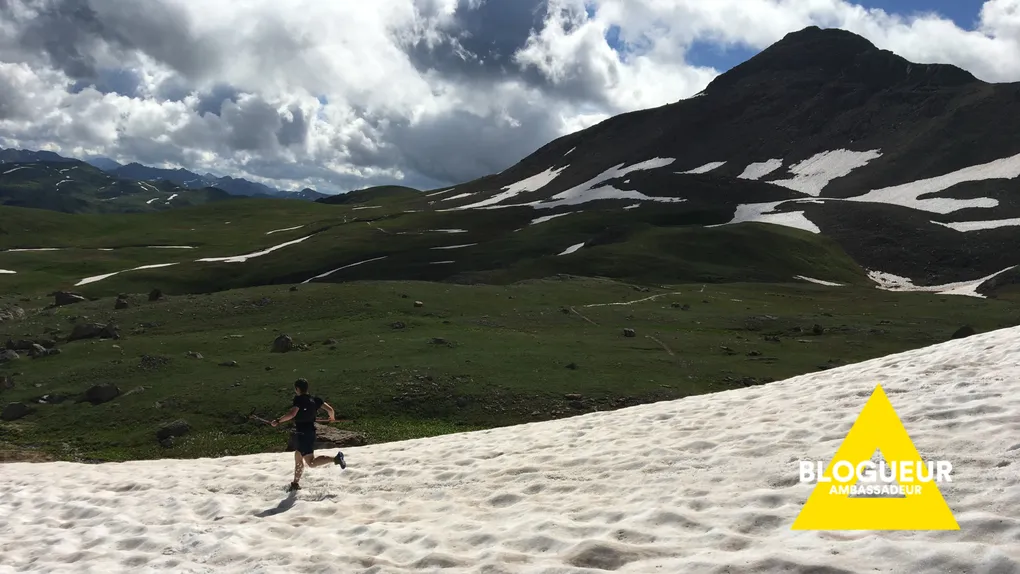Si vous êtes de vrais aventuriers, il est possible de quitter le sentier à une intersection pour continuer de courir sur le parcours de la Hardrock. En effet, un des cols de la course se situe à quelques centaines de mètres du sentier officiel. Une fois le sentier principal quitté, une montée très abrupte nous fait grimper un col très technique. L’utilisation des mains est de mise, et il faut se méfier des plaques de neige, qui peuvent être traîtres et très glissantes. En les voyant, j’ai tout de suite compris pourquoi on avait annulé la course cette année, et je ne peux qu’être en accord avec leur décision. De plus, certaines zones de la montée seront aussi instables, demandant ainsi beaucoup d’efforts pour monter, et une extrême prudence en descente. Faire ce genre de col apporte des sentiments d’une intensité incomparable, mais peut aussi devenir rapidement dangereux. Quand vous sortez en montagne, restez prudents et avisez toujours quelqu’un de votre trajet et de l’heure approximative de votre retour.