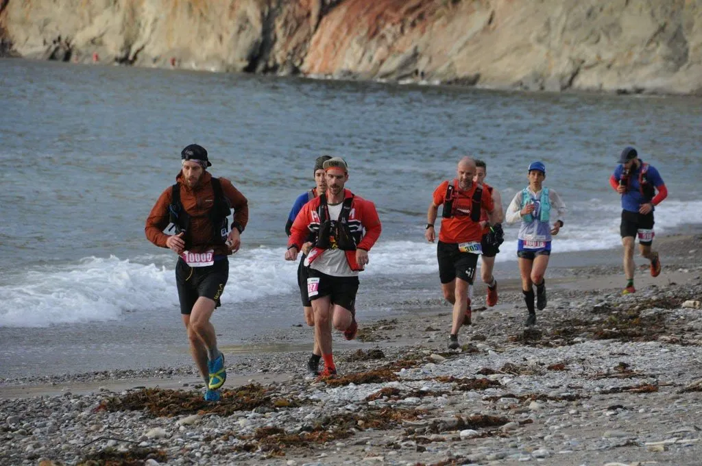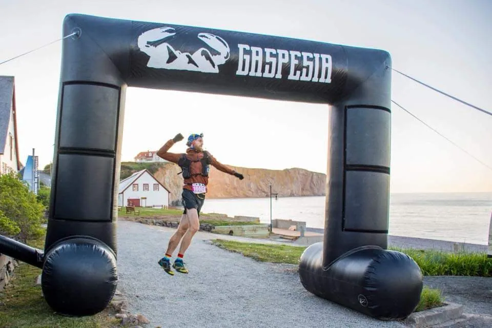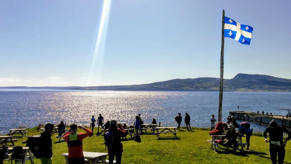 Devant nous un parcours de 160 km, divisé en 3 segments égaux. En forme de demie assiette, nous devons courir sur son bord, un aller/retour, et refaire un aller pour passer sous l’arche d’arrivée dans le village de Percé et mériter une bonne bouteille de Pit Caribou !