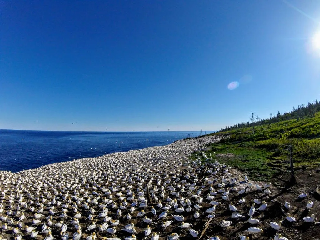 Comme autour d’un bon souper, tous nos sens sont en alerte. La vue est tout simplement incroyable, à en oublier de regarder ses souliers pour avancer. Le bruit et l’odeur des fous de bassans nous envahissent jusqu’à presque en avoir le goût dans la bouche.