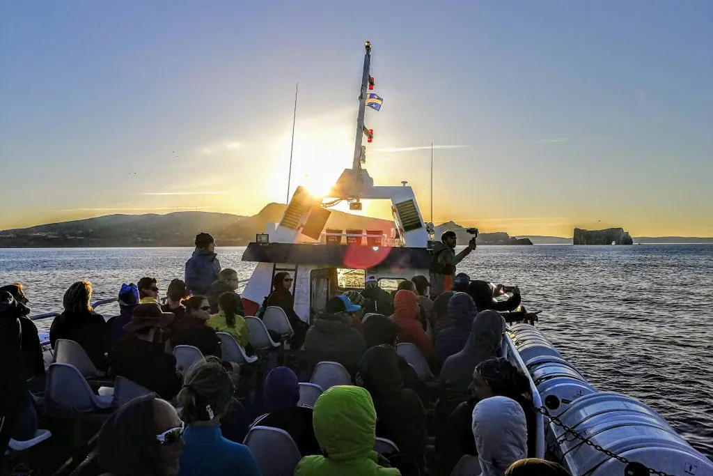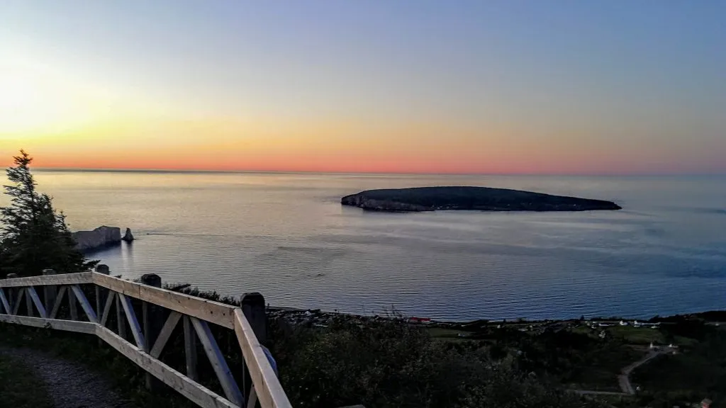 Rendus à Percé, l’atmosphère est vraiment différente de l’année dernière. Lever du vendredi matin plein face à l’océan, le Roché percé et l’île Bonaventure en spectacle.