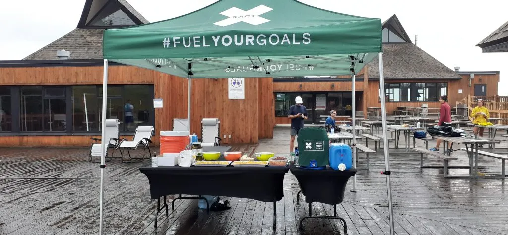 Fidèle à mon habitude, je suis beaucoup trop d’avance pour mon assignation, beaucoup trop préparée, beaucoup trop volontaire, beaucoup trop prête. J’ai hâte de participer à cette si belle organisation du Québec Méga Trail. Après, un café qui n’était sûrement pas nécessaire et un clé retracée, Alice nous emmène notre équipe de ravito et moi au sommet. Sur le chemin, j’ai encore beaucoup trop de questions auxquelles Alice répond avec beaucoup de patience et de bienveillance. Je veux bien faire les choses!