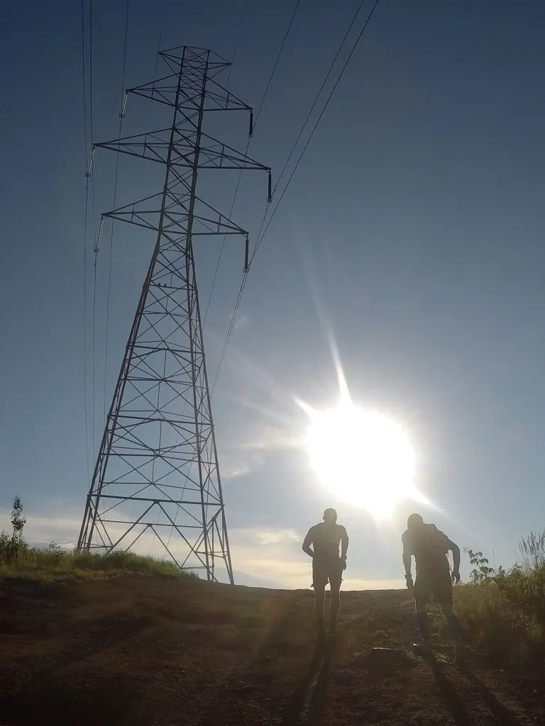 L’eau mi-cuisse, on sent bien le fond (#not) rebondir sous chacun de nos pas. L’eau froide, mais douteuse, est pourtant notre alliée dans cette journée dans “les fourneaux” sous les pylônes électriques. Il n’empêche, Thomas A. est un habitué de ces sentiers. On navigue rapidement au travers de cette swamp infestée d’insectes voraces avec éclats de rire, les souliers et short bien détrempés.