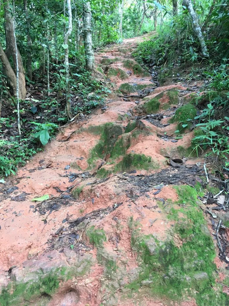 Courir dans la jungle est une expérience nouvelle, mais combien excitante! Le sol rouge ferrallitique est très dur, mais très glissant. Il faut aussi faire attention de ne pas trop s’agripper aux arbres ; les fourmis piquent. À mi-chemin j’ai croisé un temple aux abords d’une petite chute. Après quelques photos, un coureur local m’a aidé à trouver la suite du sentier. Une agence propose différents circuits dans la région (http://www.tmt-trail.com/).