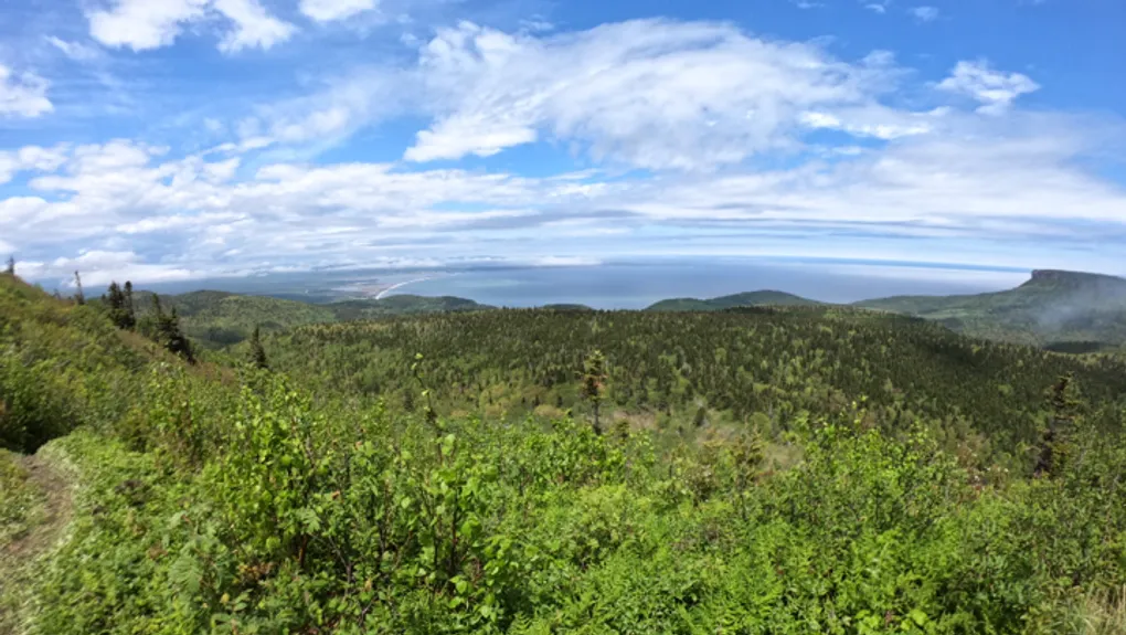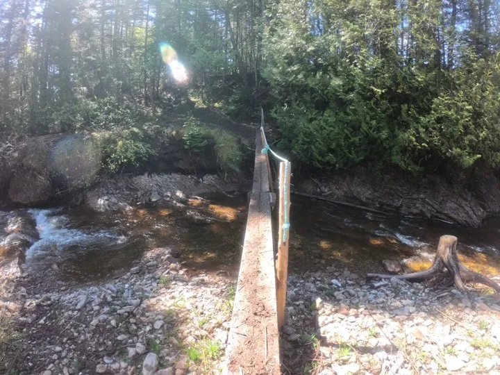 En sortant de la plage, j’ai fait un bout de chemin avec Yann. J’étais heureuse de ne pas être seule, habituellement je suis toujours seule. Le sentier de la rivière aux Émeraudes était magnifique. Le soleil s’est mis de la partie, c’était chaud; j’avais déjà hâte à la bière, il restait 46 km. Je me suis aventurée sur les ponts/escaliers de bois pourris/mouillés en pensant à cette bière qui serait donc ben bonne, lorsque soudain, les deux pieds sont partis : je me suis retrouvée sur les fesses, le souffle coupé par cette chute brutale. Heureusement, seul mon ego en avait pris un coup.