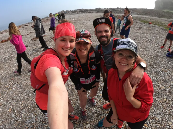 Arrivé à la plage des pêcheurs pour le départ, on se serait cru au bout du monde. La brume opaque nous empêchait de voir à plus de 200 m. J’appréhendais ce début de parcours, ce trois km sur la plage. Mon amie Corinne m’avait raconté que l’an dernier, elle avait parcouru ce trois km avec de l’eau glaciale jusqu’à mi-cuisse. Heureusement, cette année, la marée était de notre côté. Le départ fut lancé, mais déjà, après 300 m, j’avais les pieds mouillés. Bah! Pas grave, ça va finir par sécher, au pire, j’ai des bas de rechange, je l’ai changerai un peu plus loin. À ce moment, je ne savais pas du tout ce qui m’attendait…