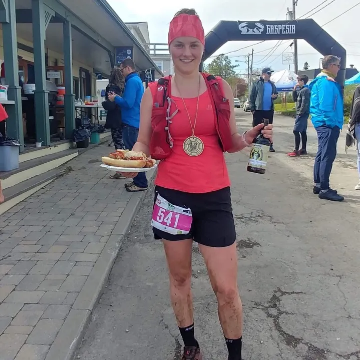 J’ai croisé la ligne d’arrivée avec le sourire. Tellement heureuse d’avoir complété mon troisième ultra trail. C’est sans trop tarder que je me suis dirigée vers la bière. Après avoir passé la journée à boire du Gatorade, du sirop d’érable et manger des jujubes, une bonne Blanche Pratto avec un hot dog de course, c’était plus que bienvenue!