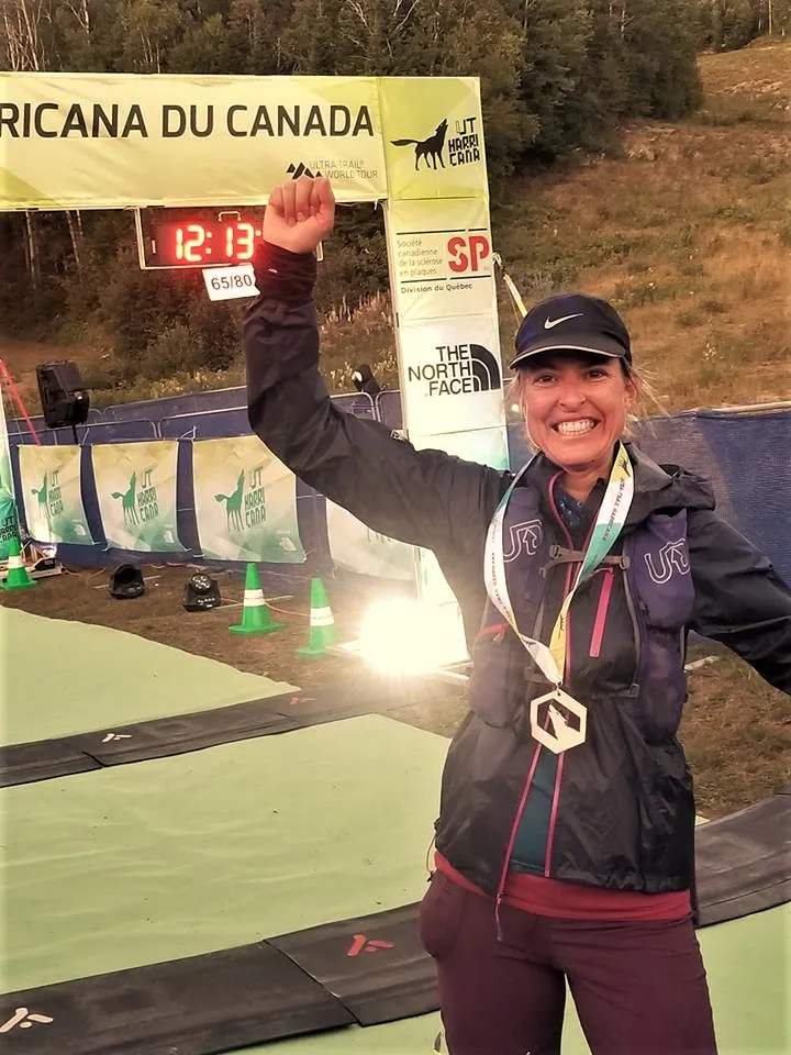 On me remet ma médaille (#jesuisloup), vous dire à quel point je suis fière de mon accomplissement. La Guerrière en moi a dû aller puiser dans ses ressources intérieures pour persévérer jusqu’à la ligne d’arrivée… La photo dit tout.
