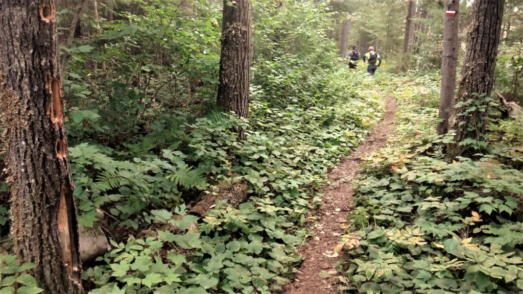 D’un pas de course décidé, j’ai finis par rejoindre d’autres coureurs dont mon compatriote du début Marc. Cool ! Il était accompagné de Sandy. J’ai décidé de me joindre à eux pour arriver à temps au prochain ravito (Split-BMR, km 47.3). Nous étions dans les temps, arrivée à 16 h 12, et le cut-off était à 16h19. Wow! Première victoire!