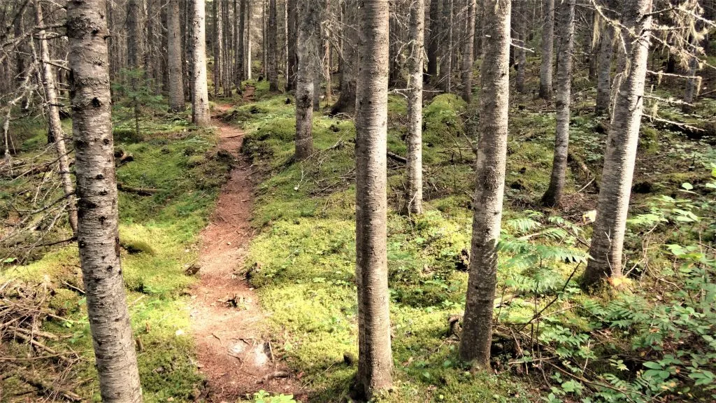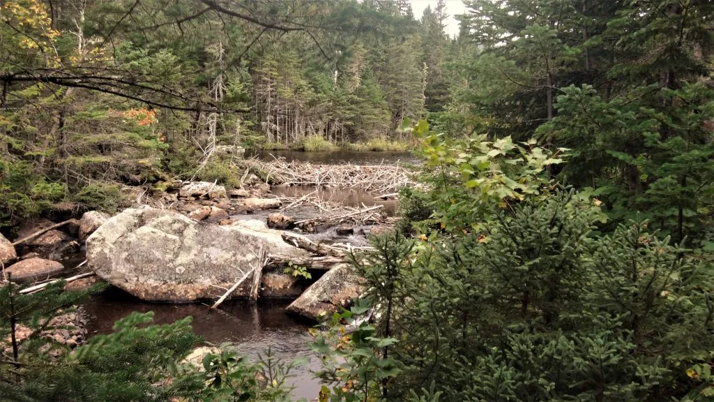 On continue! J’entends le son de la rivière qui coule et j’aperçois de beaux lacs à plusieurs endroits le long du sentier…de toute beauté. Monsieur le Castor a même décidé d’y installer sa maison : il a du goût je trouve