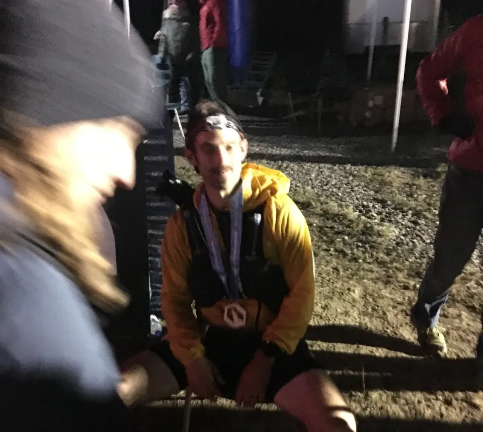 Tout ce que je me souviens des derniers kilomètres sont : le halo de ma lampe frontale, une dernière grosse montée, une grosse descente, suivie de quelques derniers kilomètres dans des sentiers de ski de fond, à tenter d’éviter des énormes trous de bouette (rendu là, on passe dedans).
