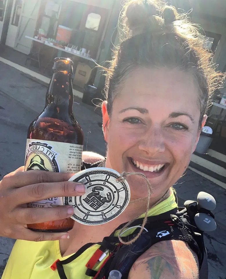 La fin de mon périple de 56 km se fait avec l’accueil de ma famille. Ce moment est un peu flou dans ma mémoire. Je me rappelle à quel point les bras de mon homme étaient confortables…je me rappelle de ma fille de 6 ans qui m’a dit : « EURK maman! Tu es tout gluante!!!» Finalement, je me rappelle à quel point mon sentiment de fierté était grand. Je suis un peu sous le choc car ce que je viens de réaliser n’est pas du tout banal : un ultra-marathon dans le bonheur. Je flotterai sur mon nuage longtemps!