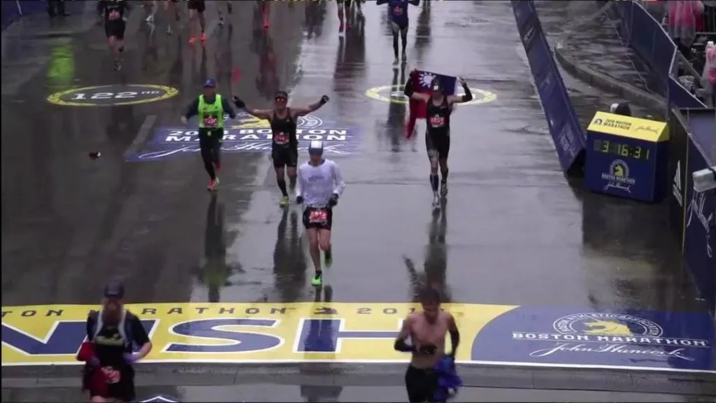 Pour les gens qui ne connaissent pas Boston, la course débute à Hopkinton, un petit village de 2 500 habitants situé à environ 42.2 km à l’ouest de la ligne d’arrivée. Alors lorsque les 30 000 participants d’un marathon arrivent, cela paraît!