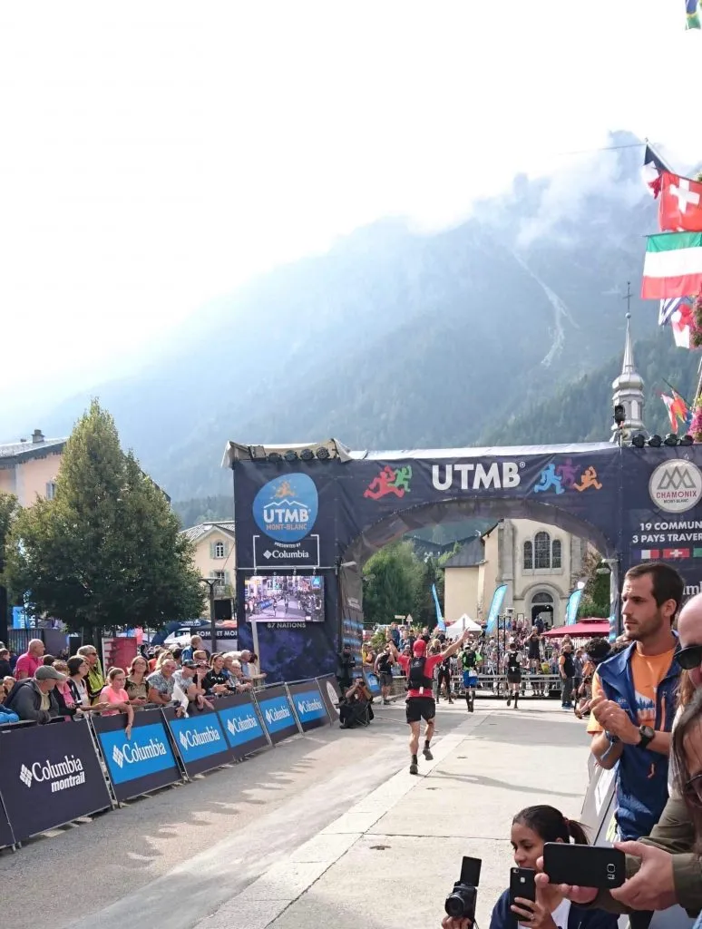 Chamonix est au trailrun ce que Montréal est (ou était ) pour le hockey. Ça crie fort, les gens débordent de passion pour ce sport, la ville est : course. Je passe la fameuse arche mythique de l’UTMB, celle où la veille je me faisais prendre en photo comme un vrai de vrai touriste. Cette fois je la passe pour les vraies raisons. Le feeling est impossible à décrire. Évidement Bastien m’attendait, mais il y avait aussi mon chum de trail Martin qui est, au moment d’écrire ces lignes, à courir son épreuve UTMB.