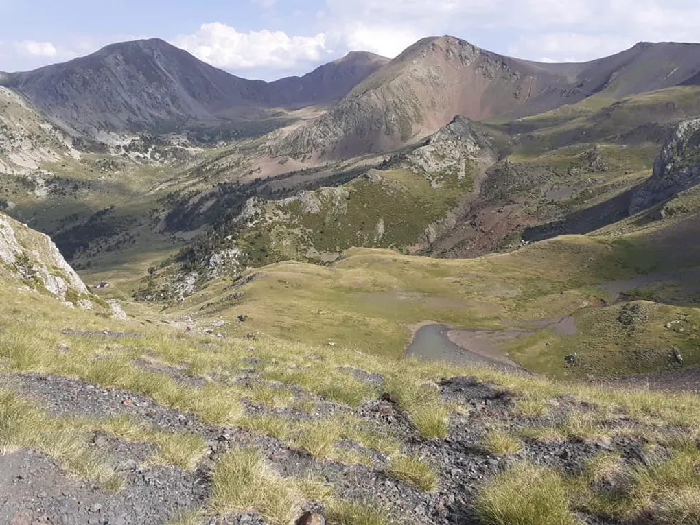 Après 48 h de course, le marquage dans la montée d’Incles est moins visible, et je ne peux pas pousser autant que je le veux étant obligé de vérifier le parcours régulièrement. Xavi me rejoint en arrivant au ravito d’Incles. Je n’ai plus envie de m’attarder, j’avale la montée vers le Coms de Jan, je me sens fort. La descente, technique, est une autre histoire, mais j’arrive au Coms de Jan en bonne forme. Ma blonde mon gars et mon père sont là. Je peux prendre une pause un peu plus longue. La chaleur commence à être intense. Il me reste une montée. L’absence de sommeil me rattrape. Je ne suis pas capable de pousser. En fait, mon esprit vagabonde un peu trop dans cette montée et je passe mon temps à chercher les drapeaux de marquage et à me demander où l’esprit tordu des organisateurs a décidé de nous faire passer.